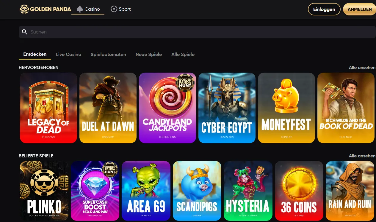 Das GoldenPanda Casino bietet über 4.000 Spiele, darunter Spielautomaten, Roulette, Poker und Blackjack – für ein umfangreiches, unterhaltsames Spielerlebnis.