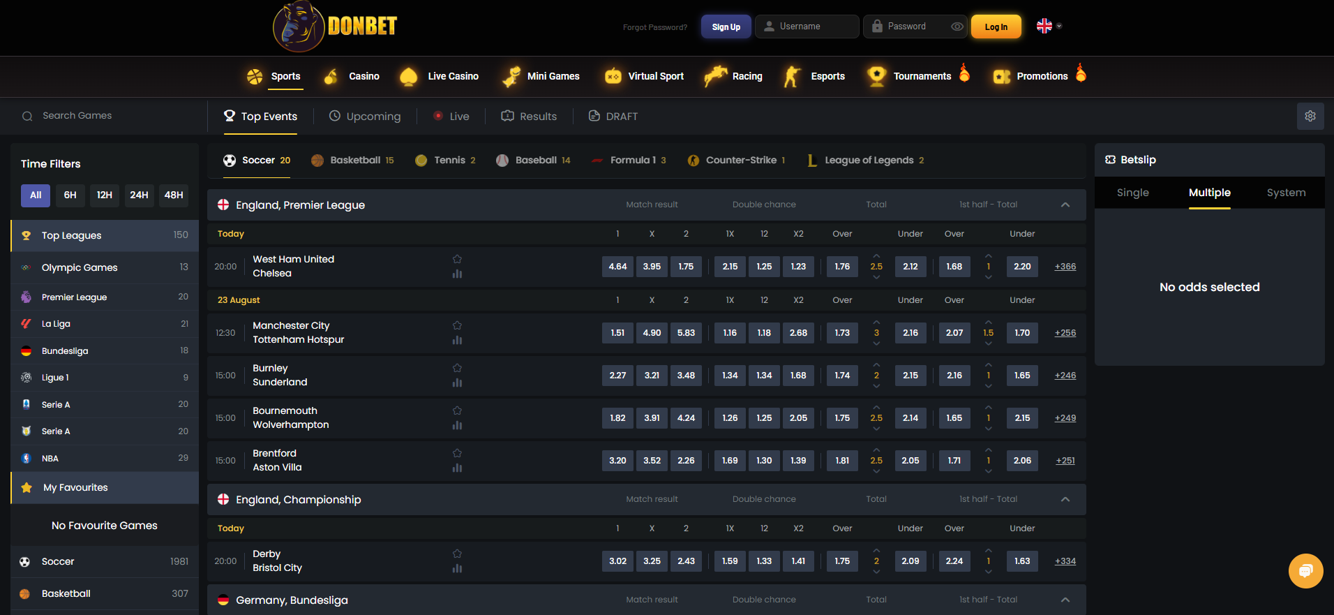 Donbet delivers multi-sport coverage and attractive promotions, giving you plenty of ways to engage with your favourite sports. Licensed in a trusted jurisdiction, it combines safety with a smooth, intuitive interface for both desktop and mobile users.