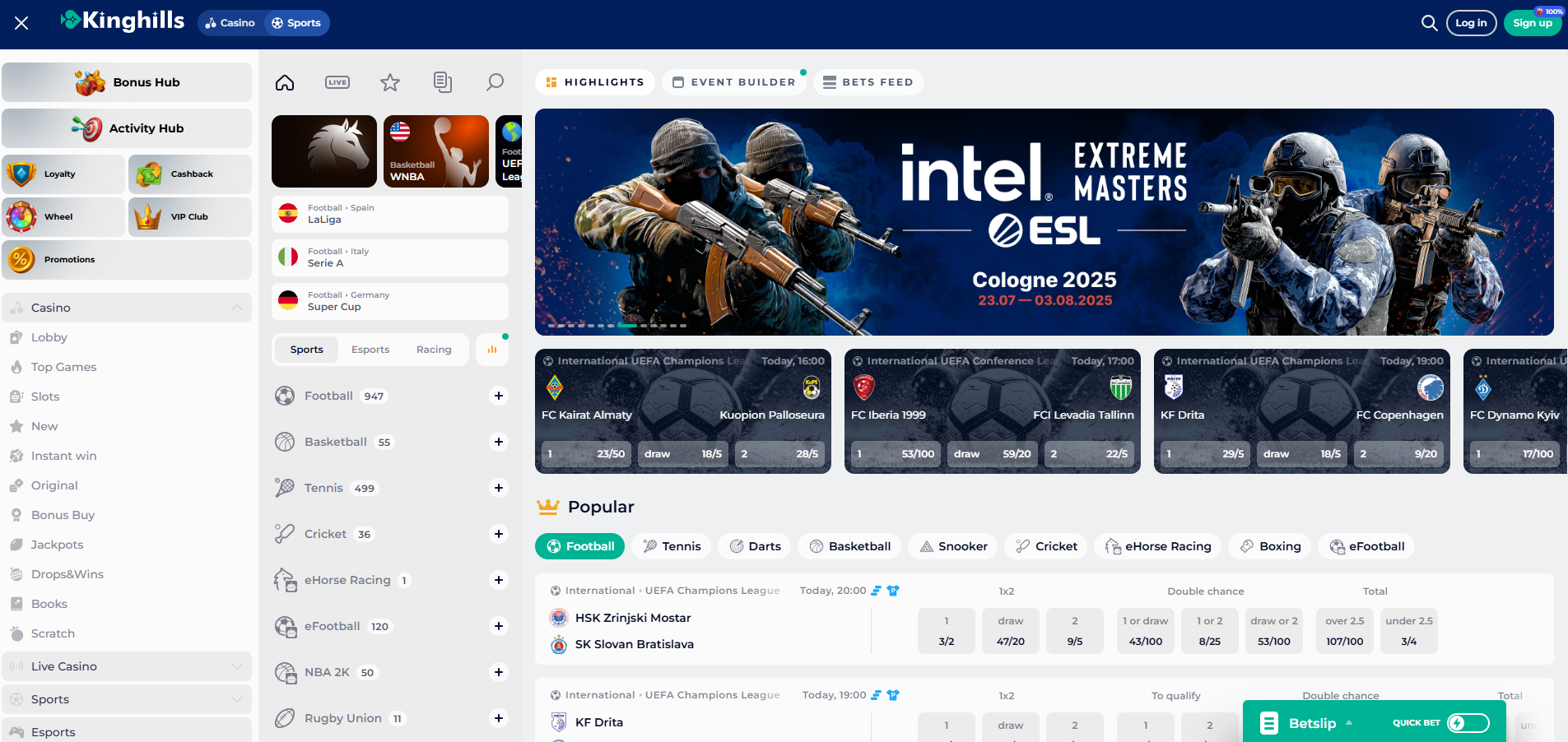 Kinghills offers eSports betting for fans of games like League of Legends, CS:GO, and Dota 2. There are plenty of markets to explore, from match winners to in-game events. It’s a good option if you enjoy following competitive gaming and want to add some extra excitement.